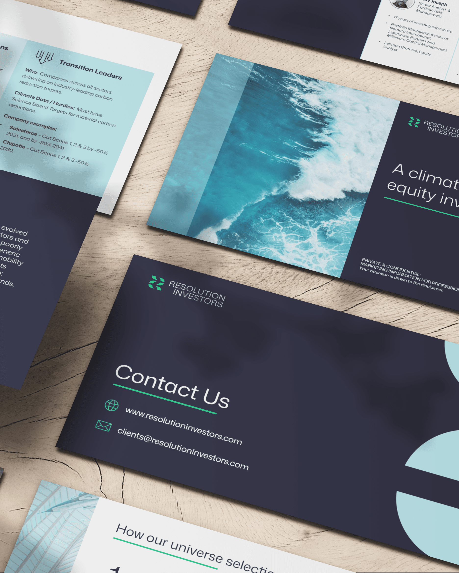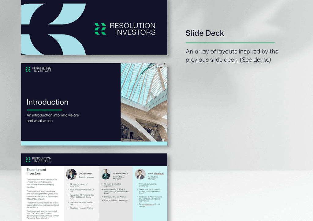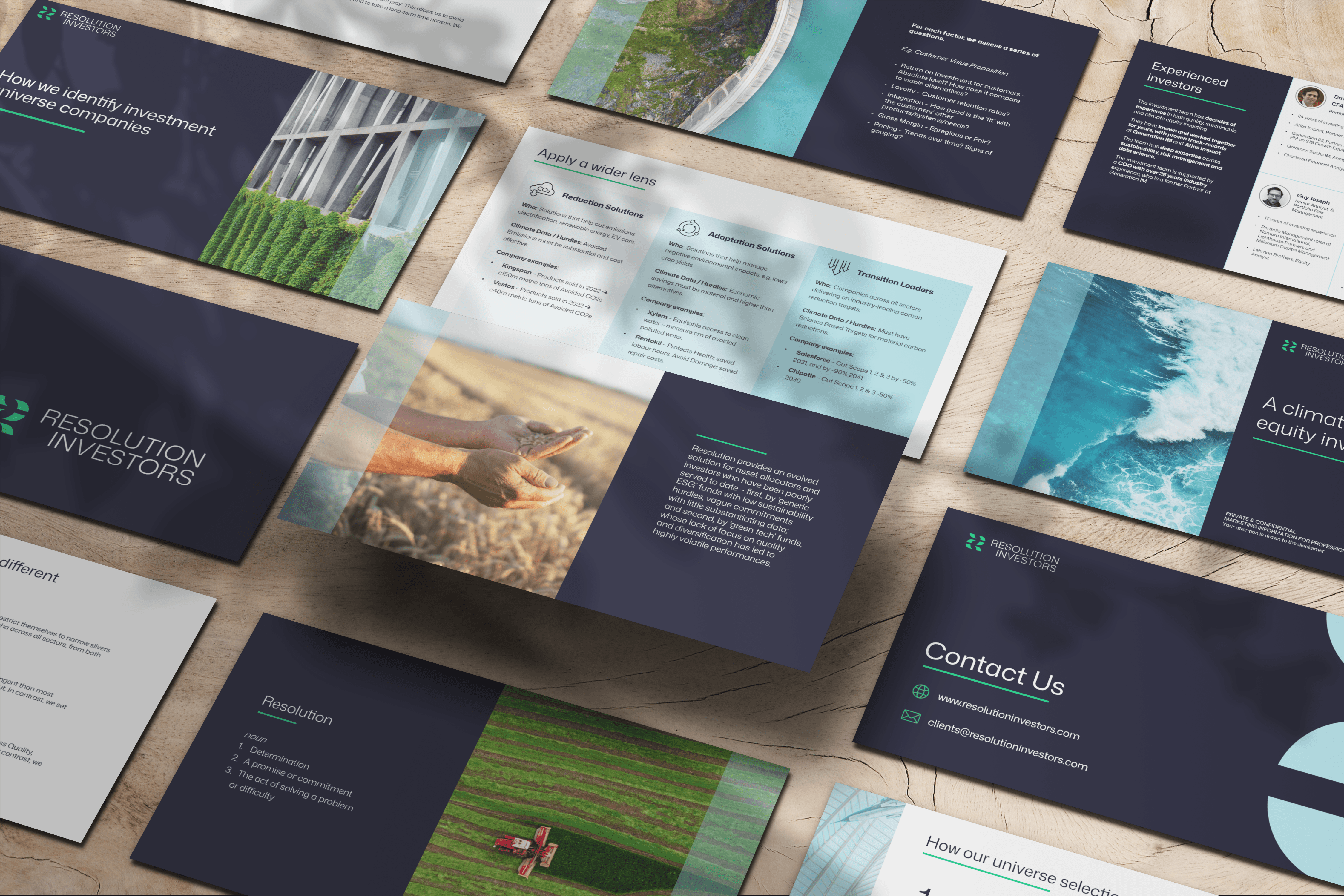 Resolution Investors is a newly launched climate-focused equity investment firm who needed to establish trust and credibility in their brand imagery.